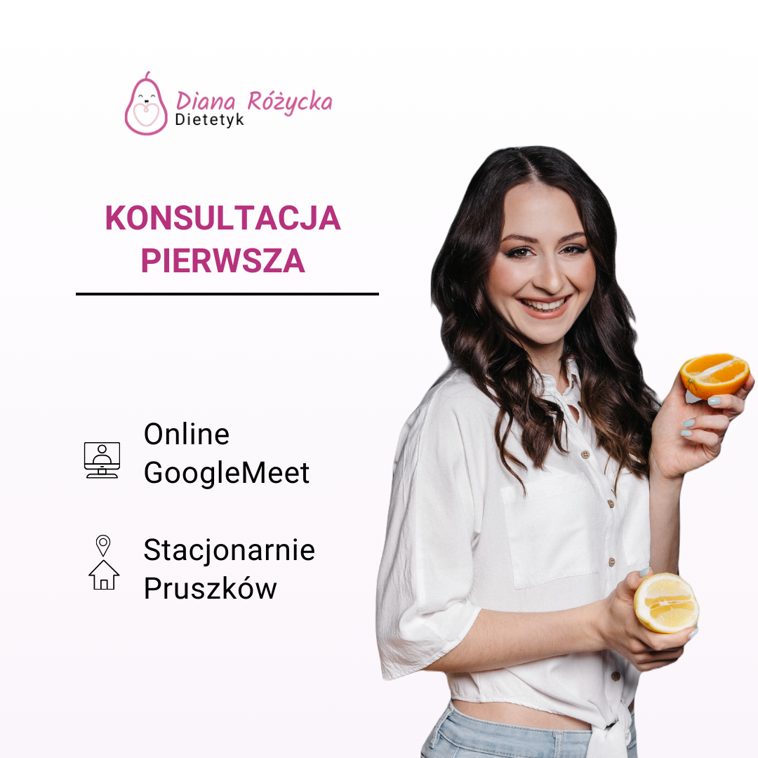 Pierwsza konsultacja dietetyczna trwa ok. 90 min dla osób, których jeszcze u mnie nie było. Spotkanie stacjonarne w Pruszkowie lub online na Google Meet. Analizuję Twój wywiad, wyniki badań i objawy, a następnie układam pierwszy, indywidualny plan działania.